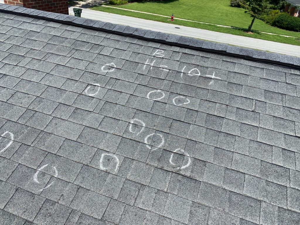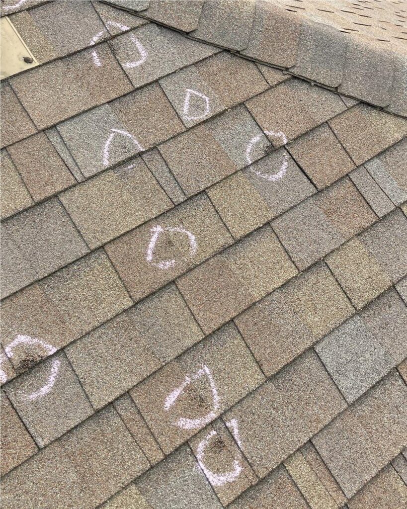 - Debris buildup or impact marks on your roof